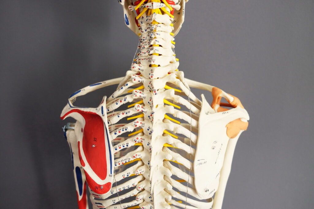 Halswirbelsäule, Brustwirbelsäule und Schultergürtel von hinten.